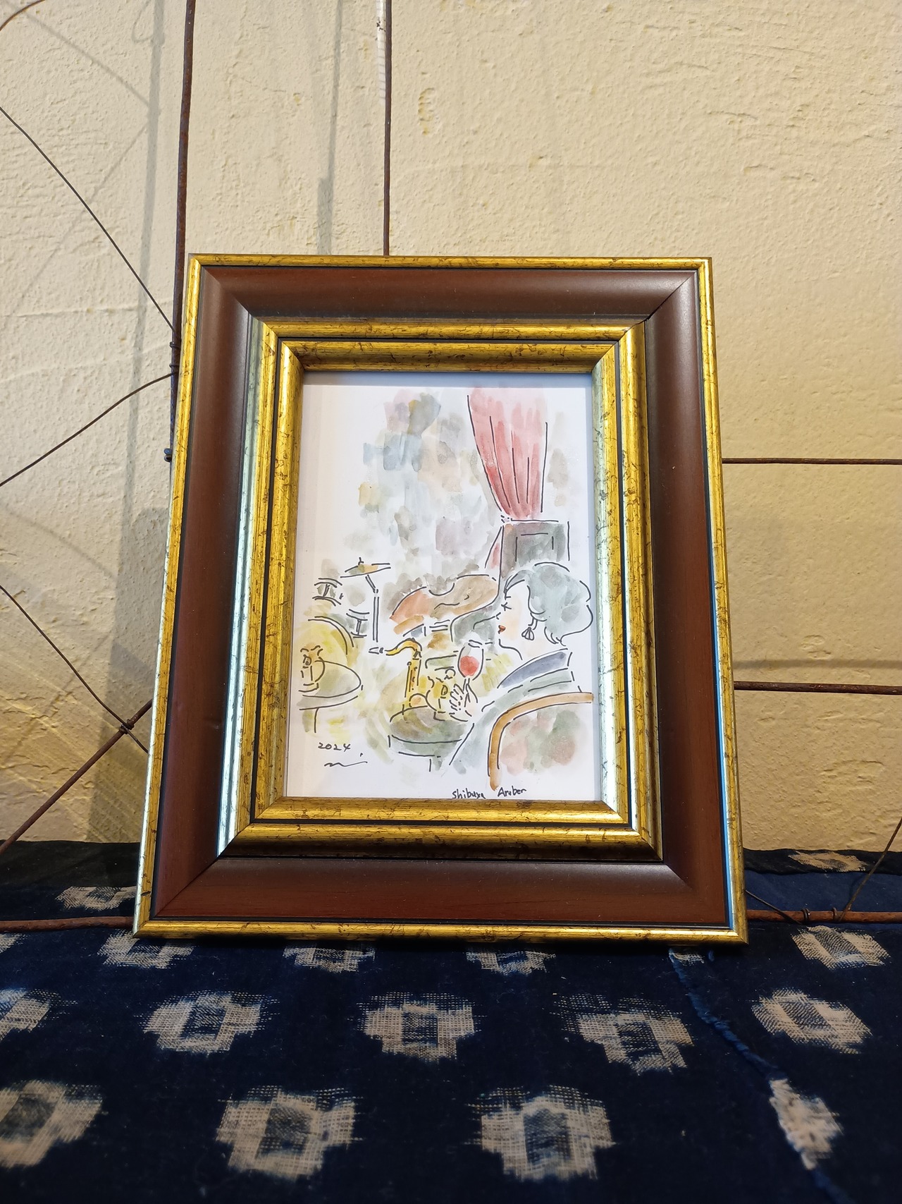 【展示中】【水彩画】ジャズ・バーと着物美人